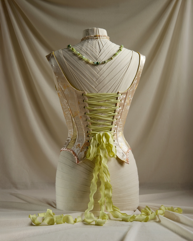Springtide is the hush between seasons made garment — a corset that feels like breath returning to the world.