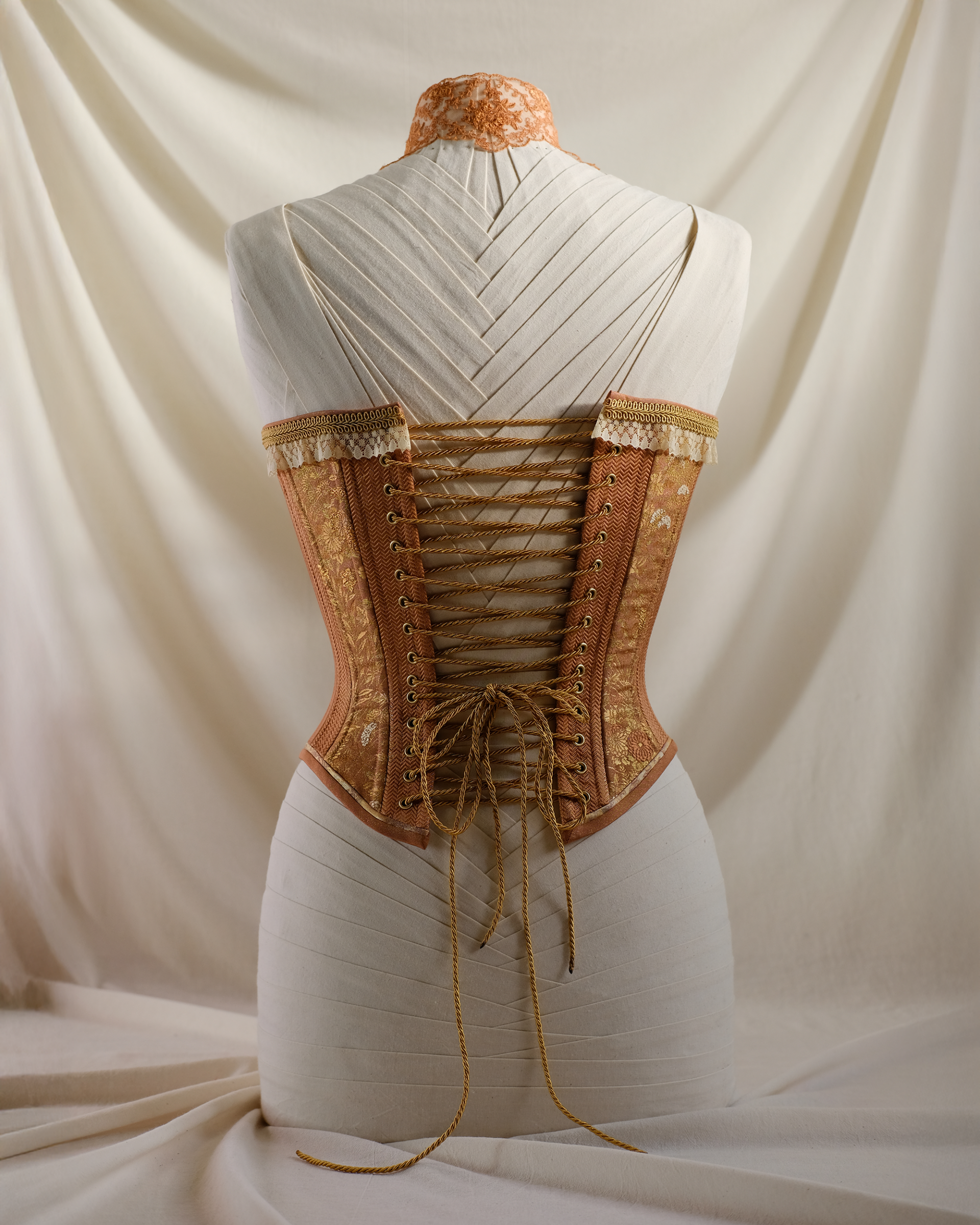 Shell: Heavyweight silk brocade; a kimono sash woven with gold threads that have dulled into a soft, candlelit glow over time.